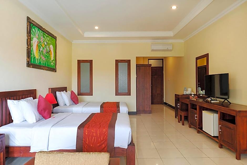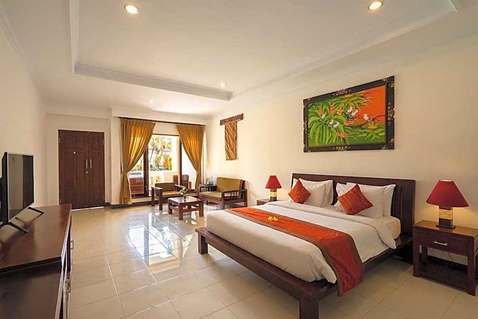 Features a modern Balinese decor with a private balcony overlooking the garden. It is fitted with teak wood furniture, fine beddings and air conditioning.